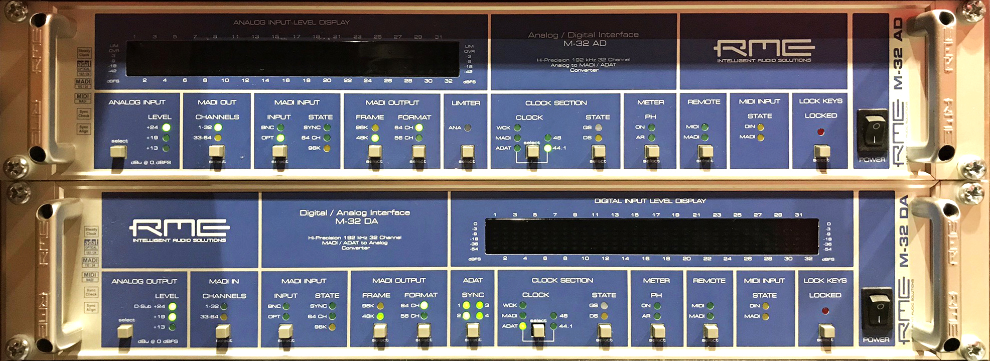 A photo showing the setup of the RME Interfaces for recording in Logic X at 44.1khz.